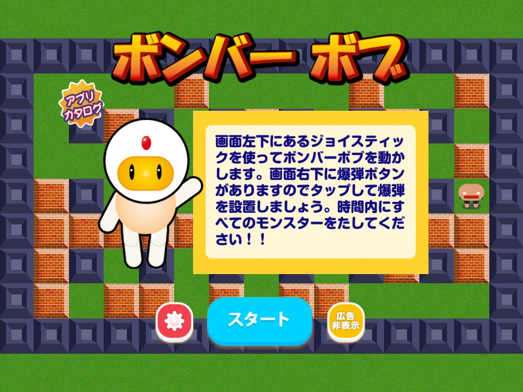 ・画面左下のジョイスティックでボンバーボムを動かします。