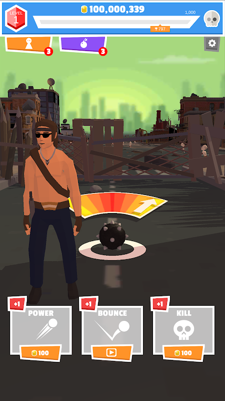 -爆弾がゾンビに当たると再爆発し、爆弾はさらに遠くまで飛んでいきます。