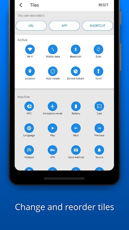 - Ability to toggle secure system settings such as Mobile Data and Location. These settings can only be toggled with root or a one time ADB command, due to Android's security restrictions