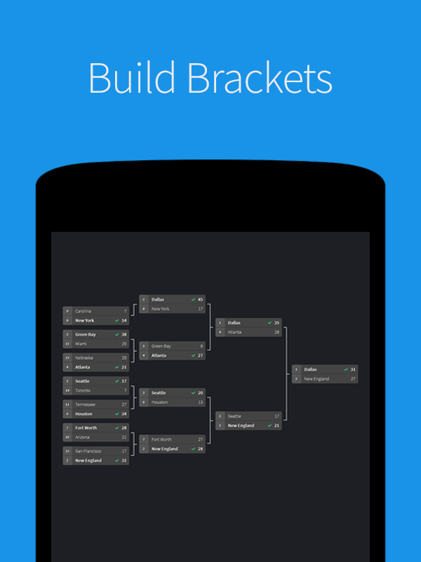 ブラケットメーカーのツールと機能を使用して、試合のスコアを送信し、トーナメント中にライブのブラケット更新を提供します。