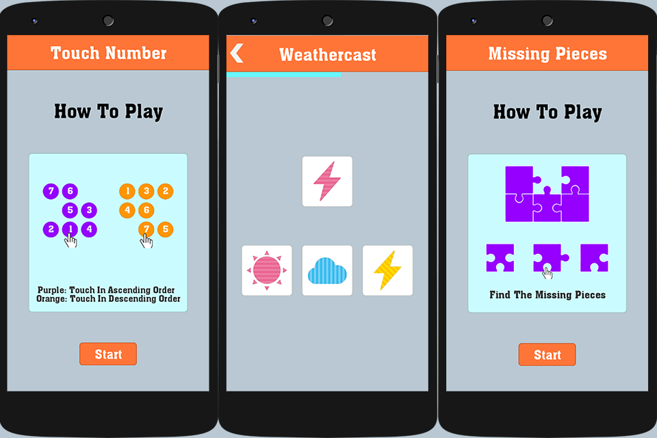 - Follow The Leader: memorize and touch the blocks in the order they appeared.