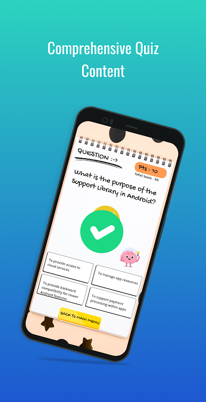 Android 開発の知識をテストする準備はできていますか?Brain Quiz: IQ Challenge をプレイしよう!Android 愛好家のために特別に設計された没入型のクイズ体験に飛び込みましょう。Brain Quiz を使用すると、Android アプリ開発のあらゆる側面をカバーする幅広い考えさせられる質問で、スキルを磨き、専門知識を拡大し、知性に挑戦することができます。