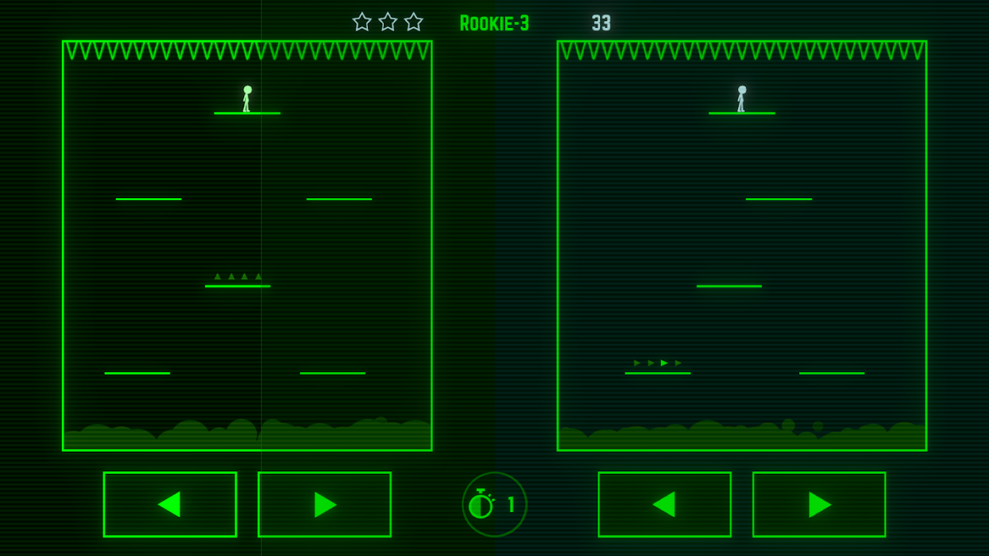 To control both games on left and right side of your phone's screen, you have to play with your both hands at the same time.To finish the level (keeping alive until the end time), you should consider two completely different gameplay.When you pass it ,almost ,you will get your IQ improved!