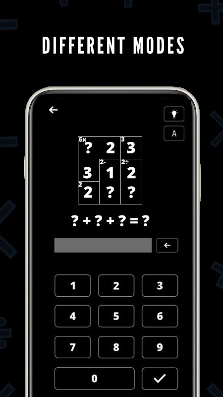 これは、1から9までの数字を1回使用して、決められた正方形の領域に配置する必要がある楽しいIQゲームです。 Brainex 2にはこのmodの異なるバージョンがあり、もっと楽しいです!