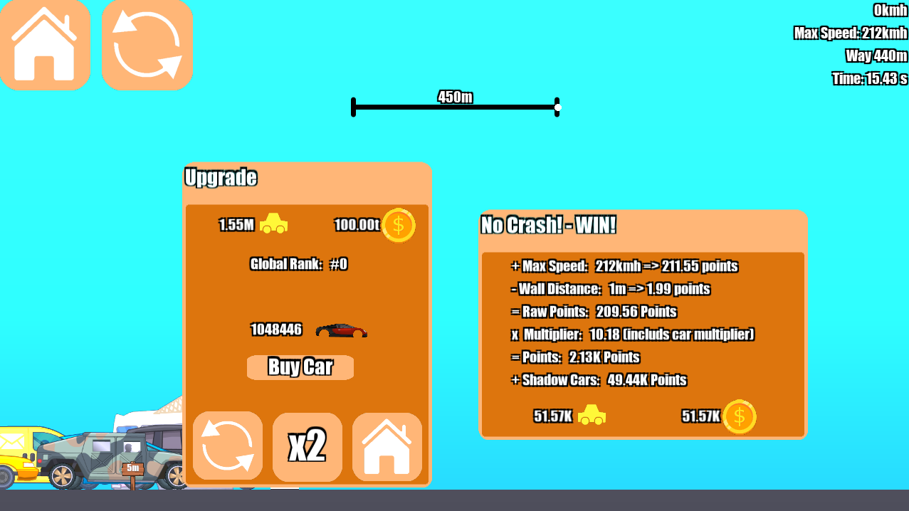 「Dont Crash Against The Wall」は、非常に特殊なクリッカー/インクリメンタルおよび物理シミュレーションです。ここでは、画面をクリックしてポイントを獲得することはできません...あなたの主な仕事はブレーキをかけてできるだけ近くに駐車することではありません