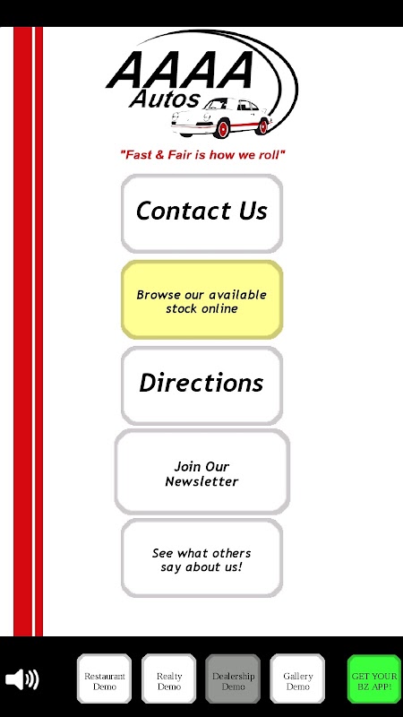 This App acts as a demonstration of features and ideas that could be implemented into an App for your brand/business. The 4 examples included (Restaurant menu focused App, Realty group app, Dealership app, and Gallery focused App) are all examples of how an App may be used to represent a brand from of those types. All the depicted businesses are fictitious, yet the app does still demonstrate how at the press of a button a user may be able to call, write you, browse your offering or be sent to Google Maps for even live directions if they desire.
