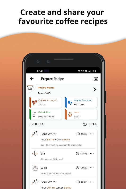 Brew Timerを使用すると、お気に入りのレシピを簡単に作成して、コーヒーを作りながら実行できます。