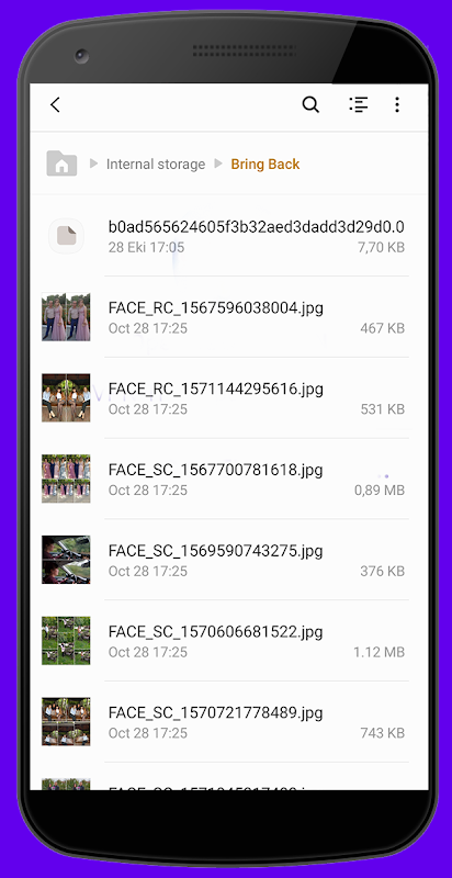 復活アプリケーションのおかげで、携帯電話で作成した写真とビデオを保存したり、通信/インターネットおよびソーシャルメディアデバイス(bluetooth、インターネットブラウザー、whatsapp、facebook、メッセンジャー、viber)で受信/ダウンロードまたはロードしたりできます。 、電報)簡単に。