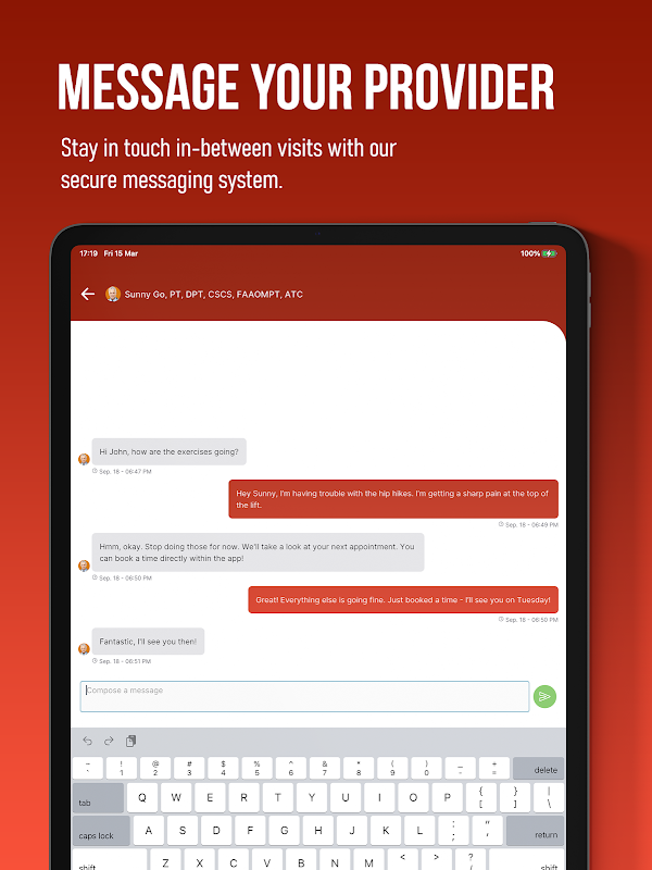 このアプリを使用すると、HD 教育ビデオを備えたパーソナライズされたホーム エクササイズ プログラムにアクセスできます。 [メッセージ] タブでは、Bring Rx プロバイダーと安全に通信できます。演習を完了すると、上達を祝うトロフィーとメダルが贈られます。