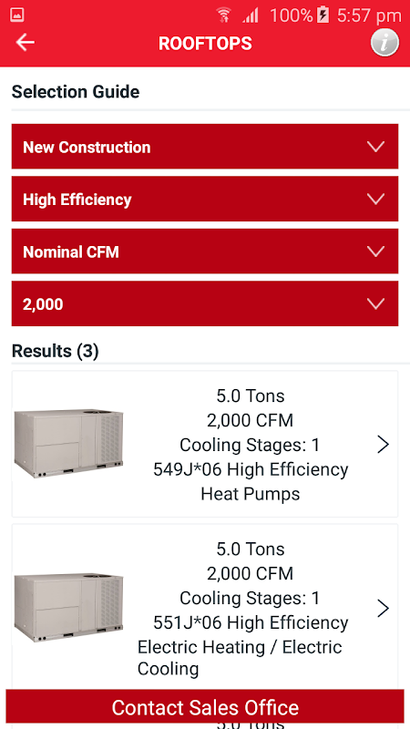 アプリは、ユーザーが交換と新建設の両方のために屋上ユニットのスポット選択で実行し、ブライアントユニット間の省エネを推定することができます。ユーザーは、Bryantまたは競合する機器の既存のモデル、または希望するユニット仕様を選択して、要件に最適なモデルを入手できます。