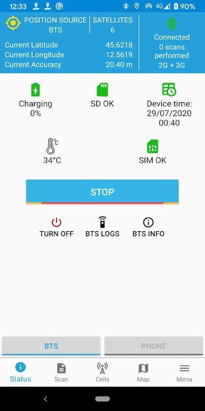 使用のGPS位置とBTS細胞のログ