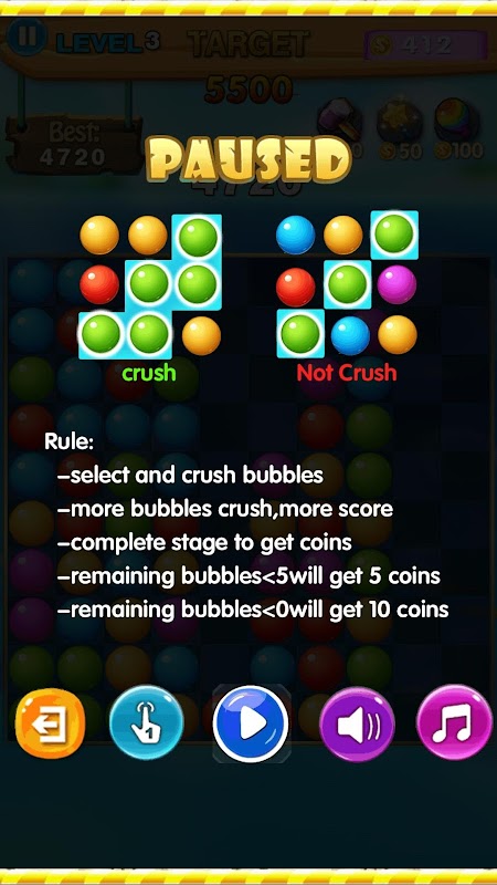 4.より多くのバブルをすばやく消すと、追加のスコアを獲得できます。