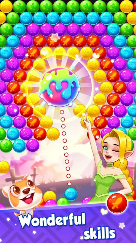 • Match 3 bubbles to pop them in this magical puzzle shooting adventure