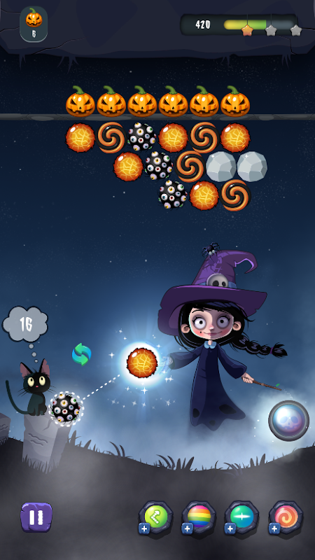 Bubble Pumpkinは完全に英語で、壮大なグラフィックと効果音で楽しませてくれます。また、子供向けの知性を高めるゲームでもあります。古典的なバブルシューティングゲームであることに加えて、類似のゲームとはまったく異なります。