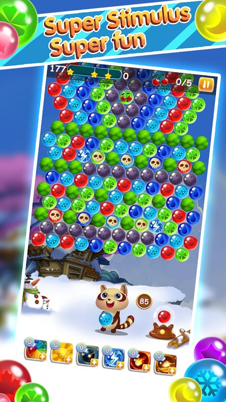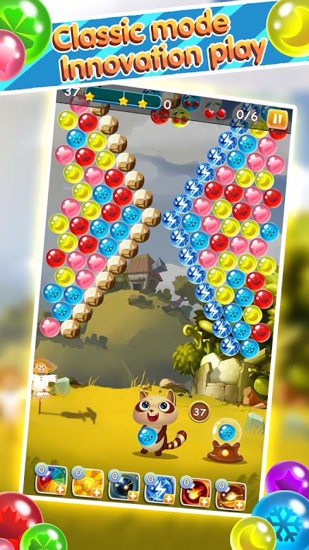 Bubble Shooter is a simple but very interesting shooting bubble game. It is very popular, but the way how to play is different. Just to clear all the bubbles to upgrade to a bigger difficulty, continue to challenge. And try to get 3 stars on each level. The rules seems very easy, but win 3 stars is difficult and not the best. Yes, It is win 3 stars and get most of the scores.
