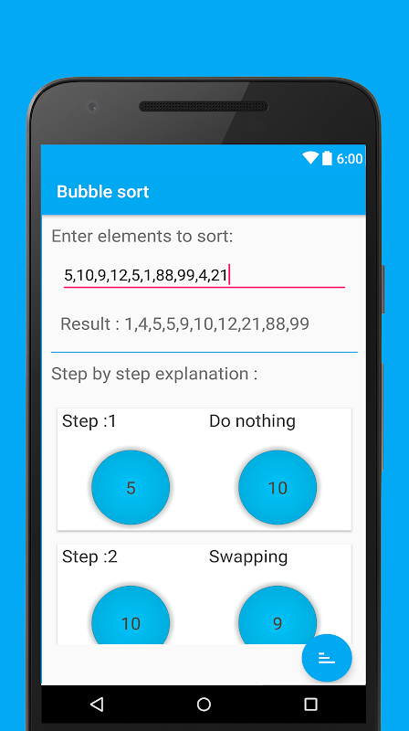 バブルソートは、簡単なアルゴリズムを理解するのに役立ちますシンプルなアプリです。