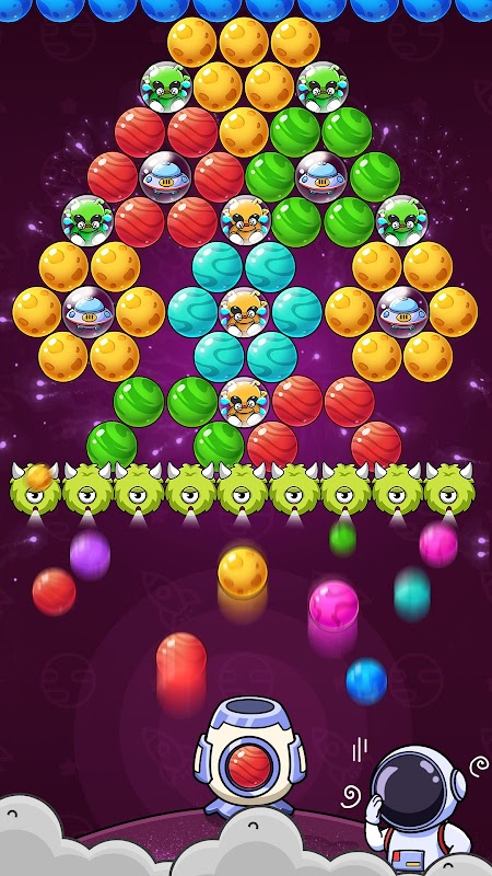 あなたの使命は、宇宙飛行士 🧑🏻🚀 とかわいい猫ロボット 🤖 と一緒にバブルシューターの旅に参加し、惑星を解放するのを手伝い 🪐、エイリアンのモンスターを倒し👾、友好的なエイリアンを解放し 👽、彼らの宇宙船を救出することです 🛸!