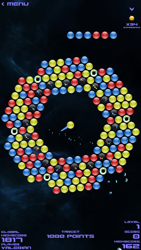 アタックモード:バブルスピナーサークルで色付きのバブルを撃ち、それを縮小してみてください。3色以上連続で出ると、バブルがはじけて破壊されます。さもなければ、円は再び成長する可能性があります。命中するほど大きくなると、ゲームは終了します。