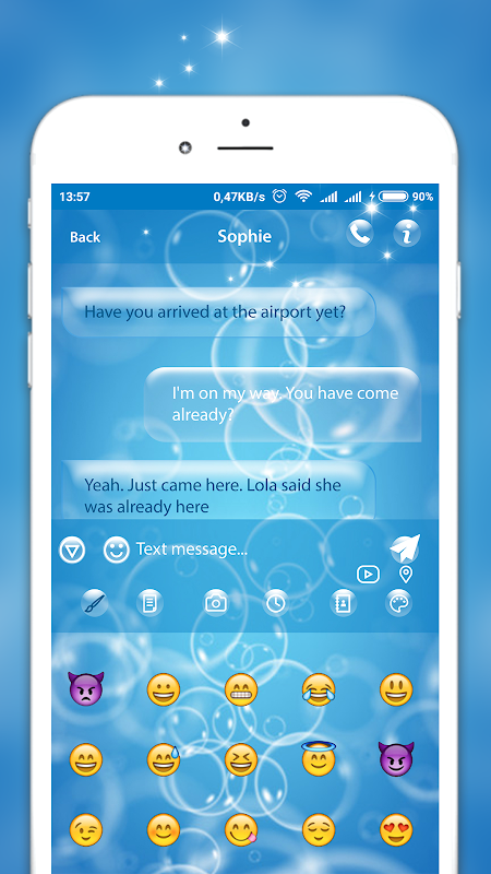 Using blow bubble water sms theme, you can customize text message backgrounds really easily with just 3 taps.