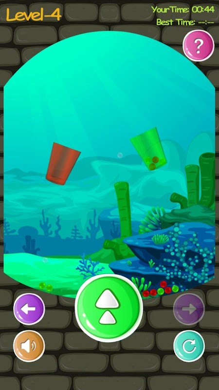 The basic concept of the game is to place the red and green colored balls into the respective colored buckets using a push and rotating the device as it needs. As quick as you can put all the balls into the respective buckets and record the time. For each level there will be two buckets, 1 is red and 1 is green. The number of red and green balls will be increasing as the levels increase.