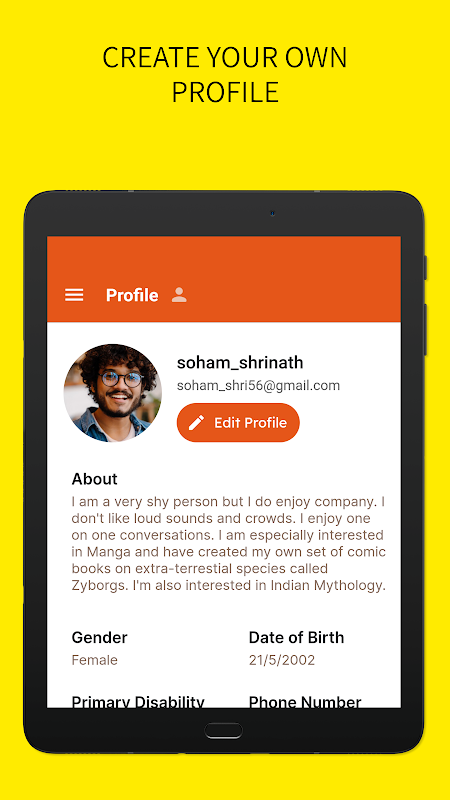 Buddy Up は、インド全土の障害者 (PWD) を友情のために結び付けるソーシャル ネットワーキング アプリです。安全でアクセスしやすいスペースとなるように設計された Buddy Up により、障害者は、興味を共有し、経験を理解する他の人々とつながることができます。このアプリは、ユーザーが会話に参加し、永続的な友情を築くことができる、協力的で包括的な環境を提供します。