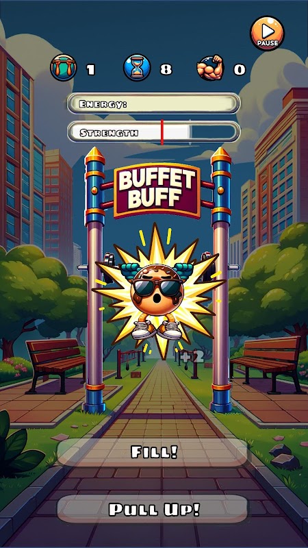 「Buffet Buff」でドミナダを体験する準備をしましょう!En este divertido juego, tu objetivo es ayudar a los alimentos altos en calorías a hacer dominadas y ganar puntos.Presiona el botón para llenar la barra de fuerza y realiza dominadas cuando alcances la línea de energía suficiente。¡Cuantas más dominadas hagas, más puntos obtendras!