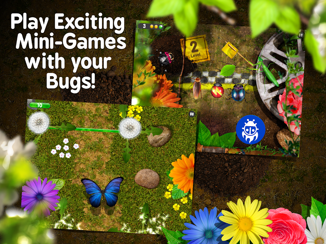 自分で作った虫を使って、「スパーキー」、「キックス」、「ターボ」など、13種類の個性的なデザインのライバルたちと「バグレース」で競い合いましょう。バタフライバレーの緑豊かな庭園で、蝶、トンボ、ハチを操り、タンポポのゲートをくぐり抜けましょう。地上と空中の虫のための特別な遊び場で、探検したり、愉快なキャラクターたちと出会ったり、ミニゲームを楽しんだりできます。