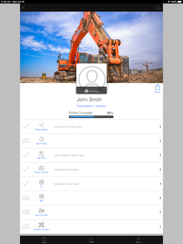 The Builder Link Up app for phone and tablet is Tenstreet’s app for construction workers.