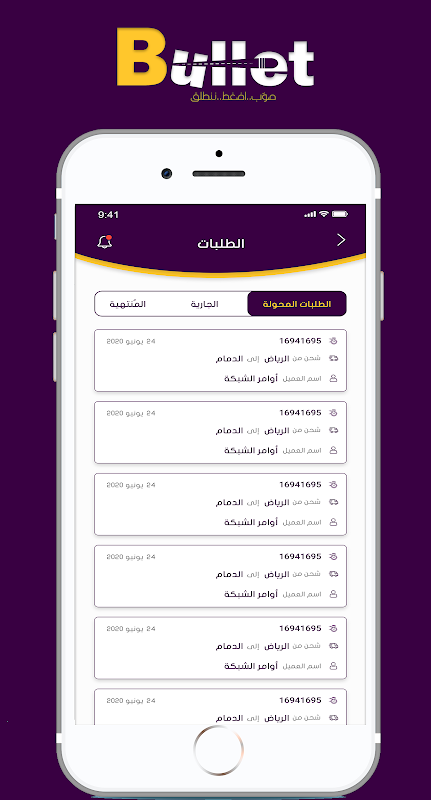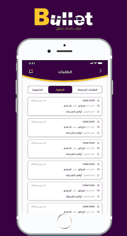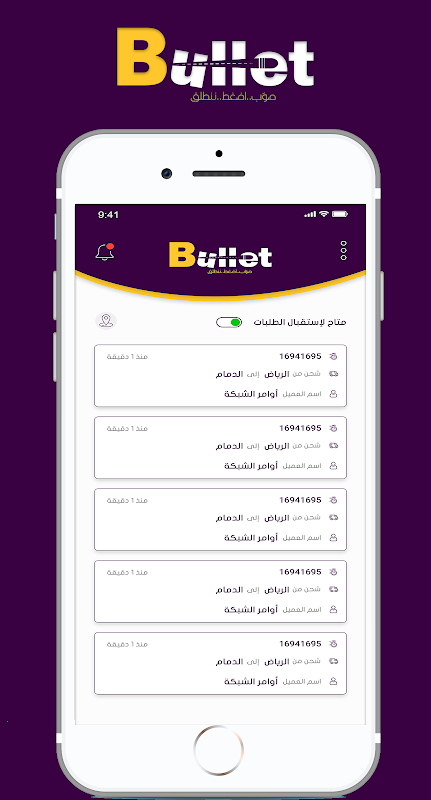 تطبيق bullet تم تصميمه لخدمة العملاء حيث عمليات شحن الطرود السريعة والآمنة .