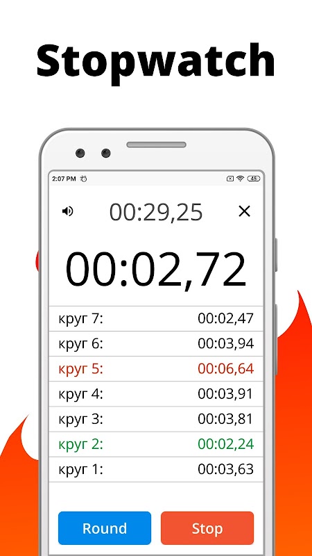 アプリケーションにはコンストラクタがあります-ニーズに基づいてワークアウトを作成します。このアプリには、タバタタイマーとストップウォッチが含まれています。