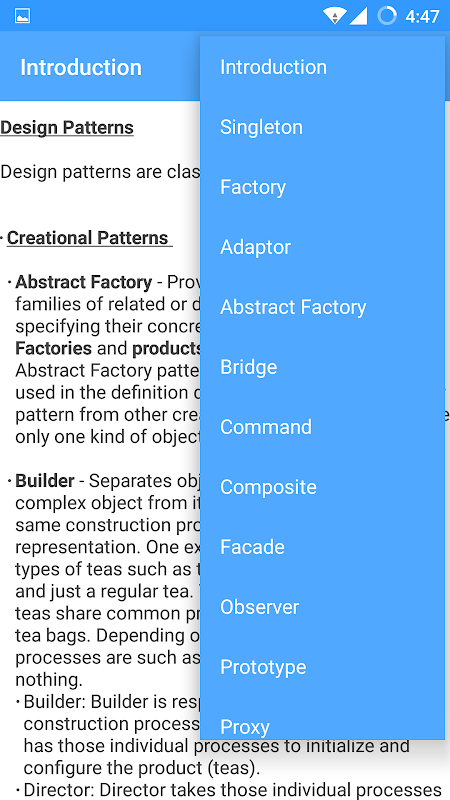 Install it and start reading through an interactive content on design patterns. It will help you just before your end semester exams, or your upcoming job interview. So download it now and keep it handy.