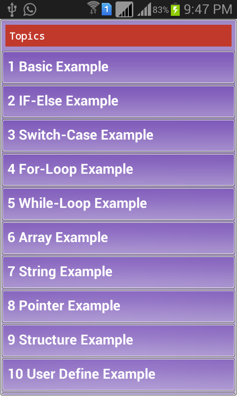 The list of programs include basic programs like prime number program, factorial program , palindrome program and so on...install it and help comes handy in your preparation for tests, interviews and where ever you require.