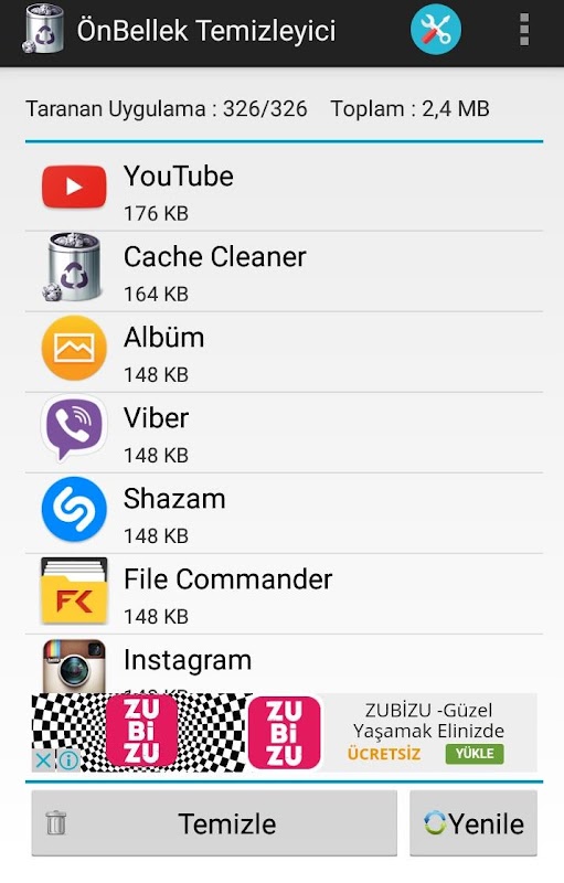 アプリケーションキャッシュファイルには、Android用アプリケーションのニーズだけで、この目的のために設計されたキャッシュファイルをきれいにするクリーナーアプリケーションをduyulur.cach、アプリケーションの終了後に不要となったアプリケーションやファイルによって作成された一時ファイルです。