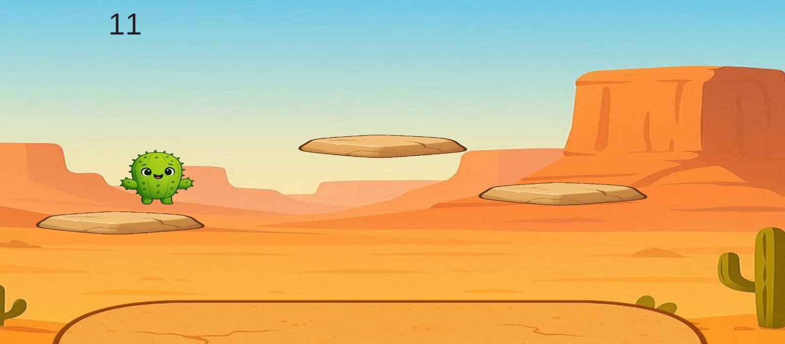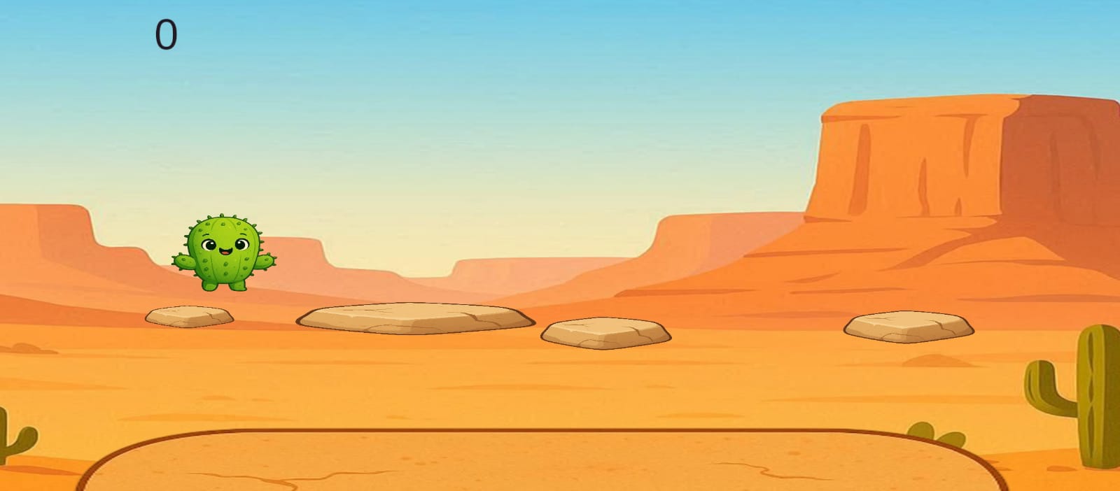 小さな足を持つ可愛いサボテンを誘導して、砂漠の岩だらけの石の上を飛び越えましょう。
