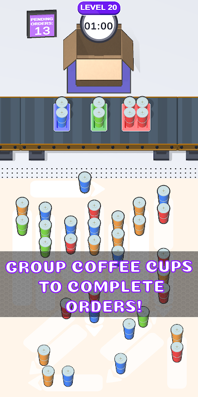 同じ色のカップをマッチさせて、時間切れになる前に注文を完了しましょう!