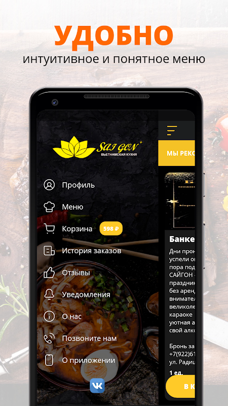SAIGONベトナム料理カフェからの注文に便利なアプリケーション。