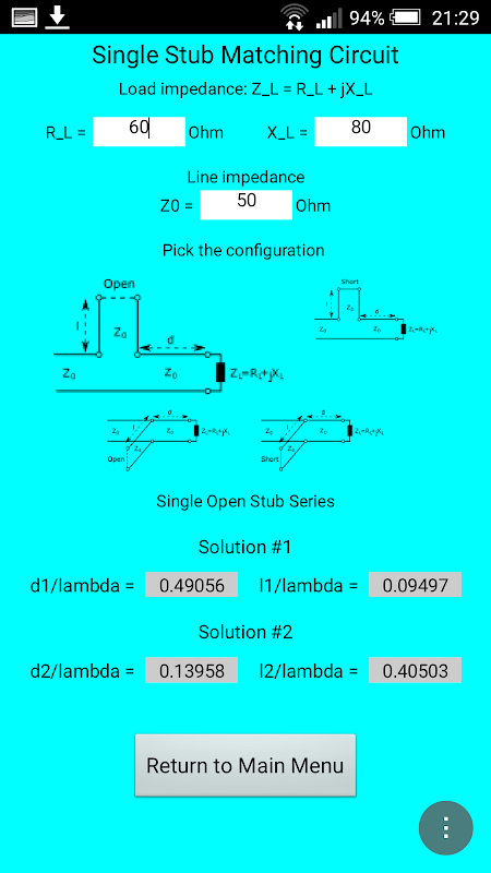RFおよびマイクロ波ラインの計算は、これまでに含まれています: