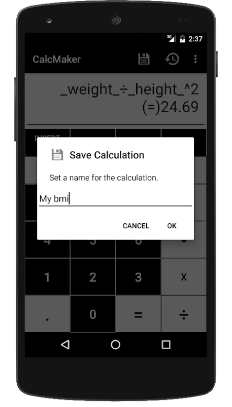 App update to comply with the latest Android version. Improved history display: for calculations with variables, the history is now filtered and there's an option in settings to show the variable's value in the history.