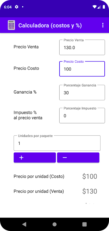 直感的なコスト計算ツールでビジネス運営を最適化しましょう!このアプリケーションを使用すると、希望する利益率に基づいて製品の原価をすばやく計算できます。販売価格と利益率を入力するだけで、残りの作業は計算機が実行します。