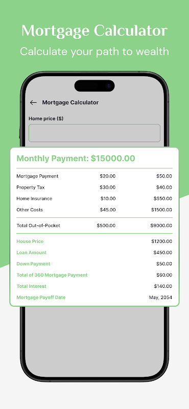 5. 住宅ローン計算ツール: 住宅購入プロセスを簡素化します。ローン金額、金利、ローン期間を入力して、毎月の住宅ローンの支払いを計算します。住宅所有者や不動産専門家に最適です。