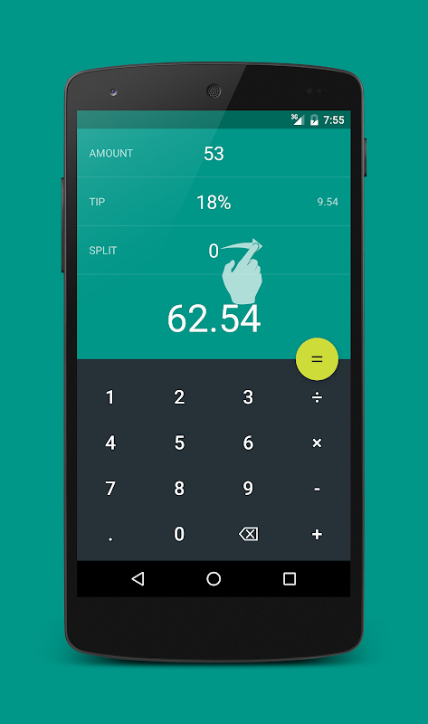 Calculator provides simple 4 function calculation, along with easy Tips calculation and bill split in a beautiful material designed app.
