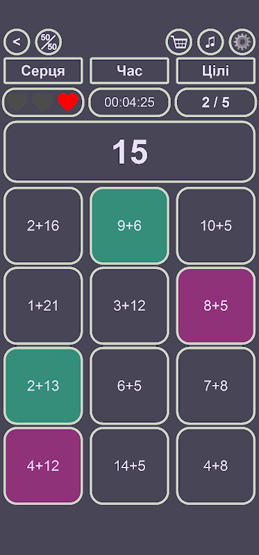 このゲームの目的は、目標の数の足し算のあらゆるバリエーションを見つけることです。
