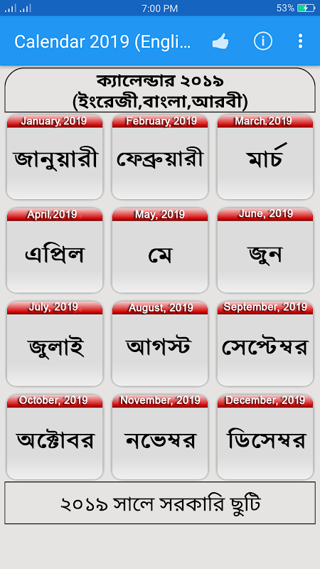 This is English, Arabic and Bangali calendar app. Through this Bangla calendar 2019 app, you will easily find the dates of English, Bangla and Arabic in the year 2019 and you will be able to know the official holidays of all the months of 2019. So you do not have to install any other calendar 2019 calendar app. This calendar app includes beautiful, precise English, Bengali and Arabic calendar calendars. so always keep this with you in this 2019 Bangla calendar app.