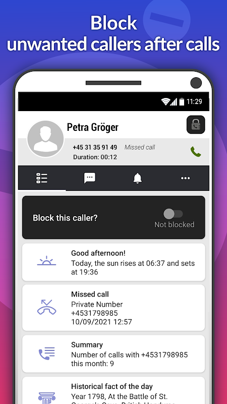 •発信者を即座にブロック:ワンクリックで迷惑電話に別れを告げます。早くて簡単!