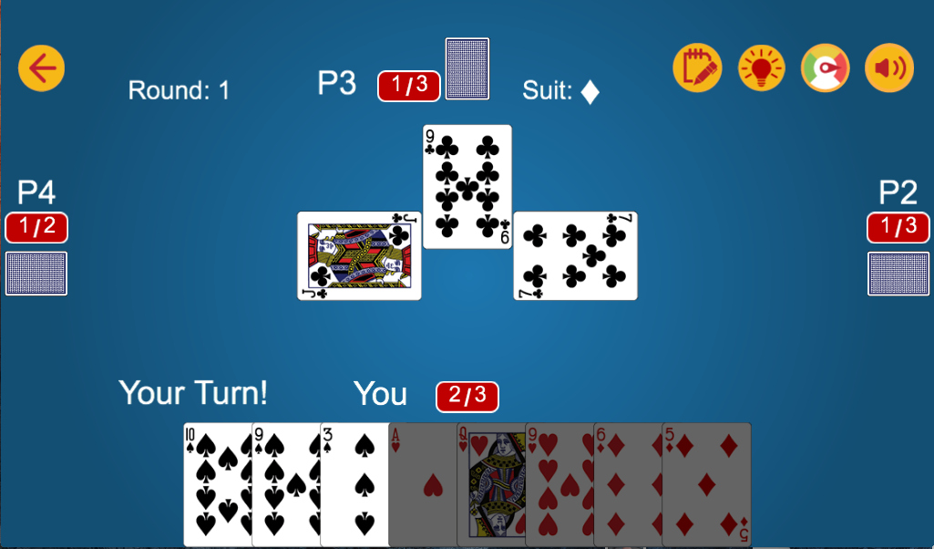 コールブレイクは、スペードに似た戦略的なトリックベースのカードゲームです。ネパールとインドで非常に人気があります。このビンテージカードゲームは、4人のプレイヤーがそれぞれ13枚のカードを使って仮想ゲーム体験を提供します。1ラウンドに5回のディールが行われます。ビッド/コールでゲームを開始すると、プレイヤーは効果的な人工知能を備えた3人のコンピュータプレイヤーと対戦できます。任意のスーツ(クラブ、ダイヤモンド、ハート、スペード)のカードを1枚投げることでゲームを開始します。他のプレイヤーも、そのスーツがなくなるまで同じスーツに従います。同じスーツがない場合、プレイヤーは別のスーツのカードを投げることができ、そのラウンドは最も高いカードを持つプレイヤーが勝ちます。スペードのカードは、同じスーツのカードがなくなったときに他のカードに勝つために使用できます。例えば、スペードの2は、他のスーツのより高いカードに勝つことができます。すべてのプレイヤーが同じリードスーツとスペードのカードの両方を使い切った場合、どのスーツであってもリードカードが勝ちます。スマートフォンやタブレットで、伝説のカードゲームの一つをデジタルで楽しくプレイしましょう。