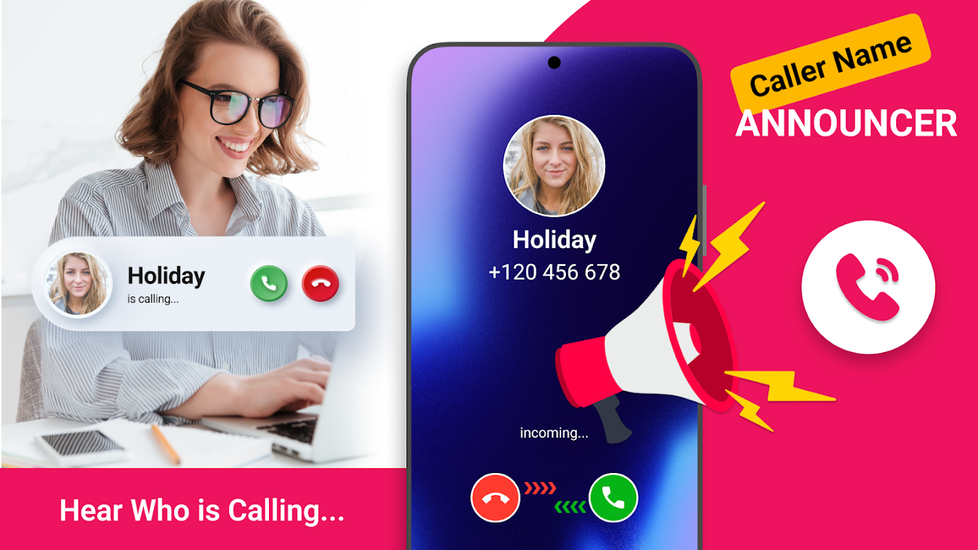 発信者名アナウンサーと発信者を音声で聞く:この発信者名アナウンサーがインストールされていると、電話に触れることなく発信者名アナウンサー機能を使用して電話をかけることができます。あなたは知ることができます。あなたが重要な仕事をしていて電話をかけることができない場合、このアプリはあなたに非常に役立ちます。この発信者アナウンサーアプリは、着信音で電話の名前を教えてくれ、あなたが電話を選んだかどうかを知らせます。着信アナウンスソングのプレフィックスとポストフィックスを設定できます。発信者の名前を聞くことで、なりすまし通話について知り、不明な発信者をブロックできます。これは、発信者ID番号を識別し、発信者があなたに電話をかけたときに名前をアナウンスする発信者ID名アプリケーションです。電話を受けたときに名前を尋ねることで、単純なビジネス通話とプライベート通話を区別できます。