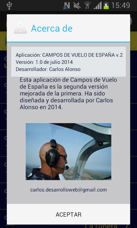 このアプリケーションは、空港、軍事道路、飛行場、ゴルフマイクロライト(ULM)、森のトラックで見つけることができ、既存のフィールドスペインのフライトに関する情報が含まれている、地域をaterrizables ...