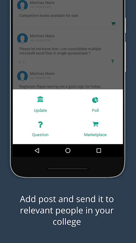 3)「マーケットプレース」:有効にするユーザーがそれらを販売するために役立つ広告を投稿する/日々の大学生活に必要なものを購入。