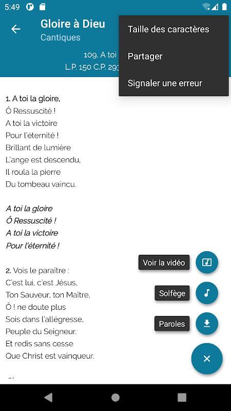 - Personnalisation de l'affichage (Taille et Ordre des cantiques)