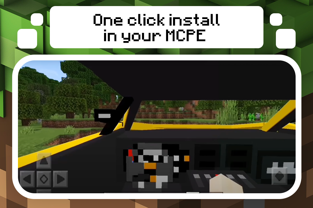 There are many Cars addons with different features to choose from. But most of them dont work and dont look good enough. You can now start enjoying mcpe world with our cool car mod! That why you need this car mods! Download and Enjoy this cars minecraft mod.